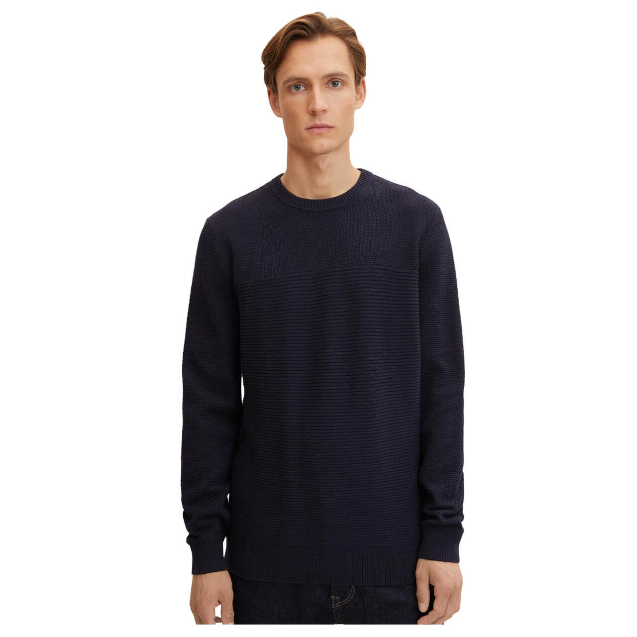 Herren Pullover Basic Structured Knit in Dunkelblau