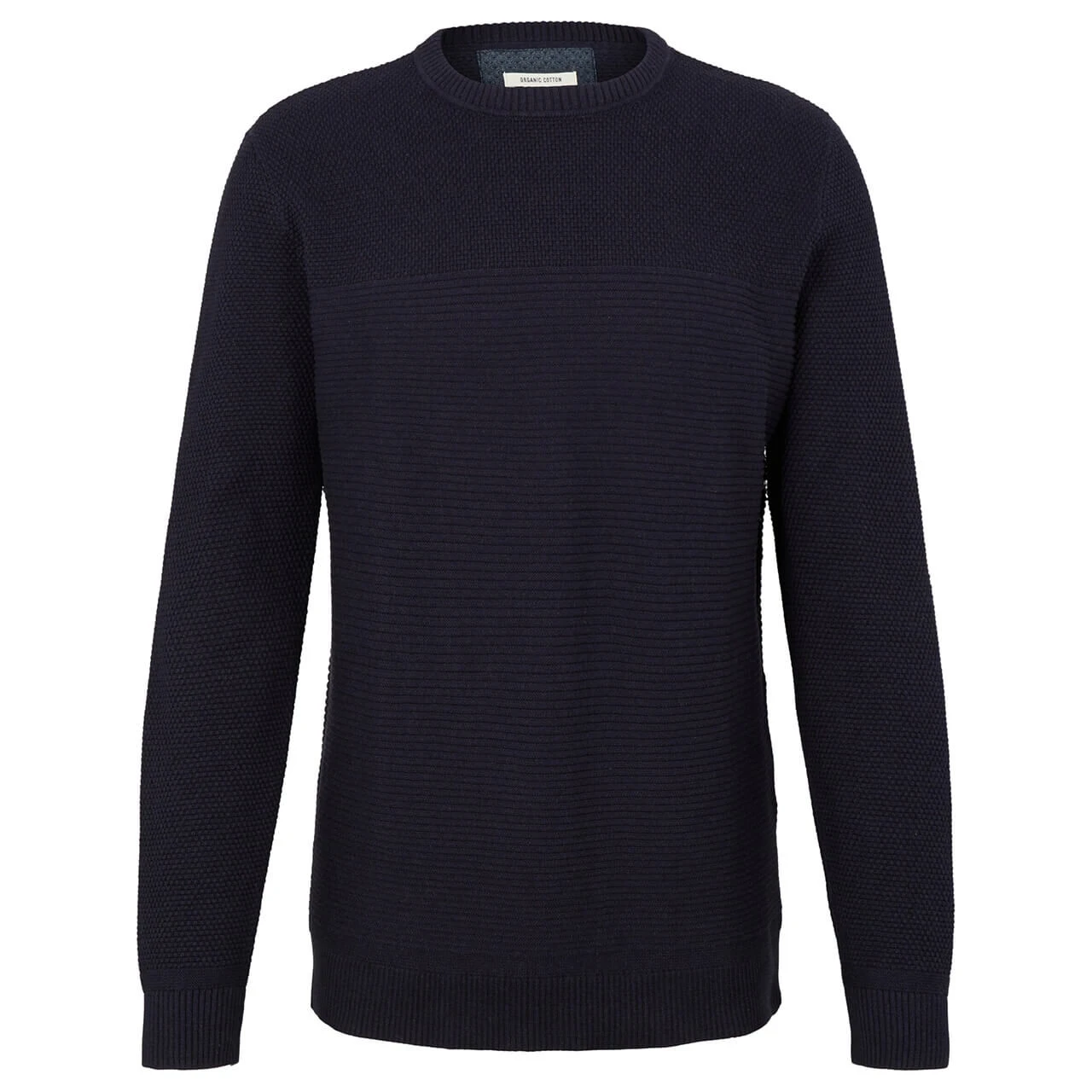 Ein unverzichtbares Basic ist dieser Herrenpullover von Tom Tailor! Die Aufteilung zwischen Feinripp und Strickmuster macht dieses Modell zum Hingucker.