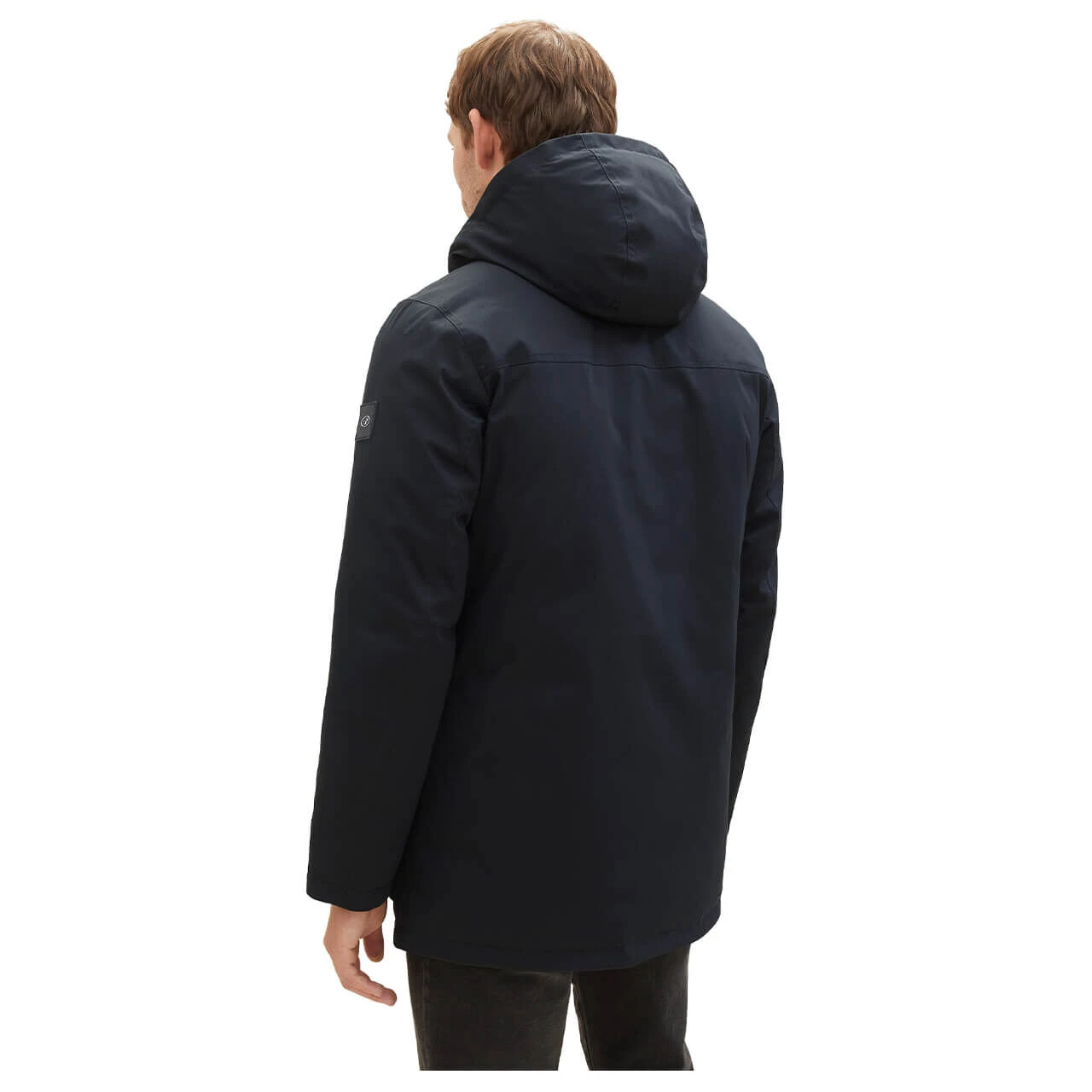 Diese Tom Tailor Herrenjacke besticht in einem zeitlosen Schwarz, das Ihnen ein flexibles Kombinieren ermöglicht. Die vier Außentaschen mit Druckknöpfen verleihen der Winterjacke ausreichend Stauraum, während die abnehmbare Kapuze zusätzlich die Funktionalität erhöht. Ein Logo-Badge am Ärmel rundet das schlichte Design elegant ab.