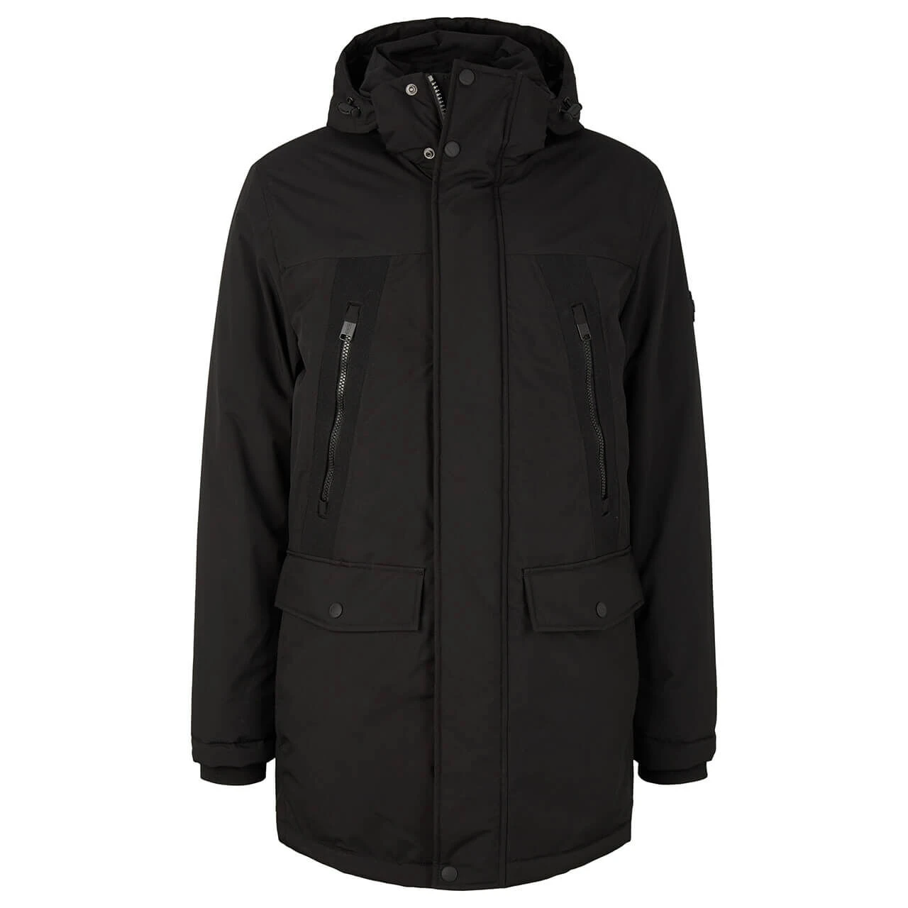 Mit einem warmen Futter und einem modischen Auftritt kommt die Tom Tailor Herrenjacke Technical Parka einher. Die Winterjacke bietet mit jeweils zwei verschließbaren Brust- und Hüfttaschen ausreichend Stauraum für Geldbörse und Schlüssel. Eine abnehmbare, größenverstellbare Kapuze bietet zusätzlichen Schutz vor Wind und Wetter.