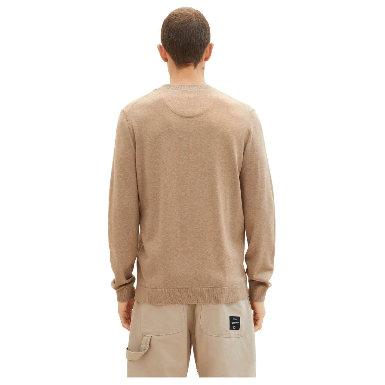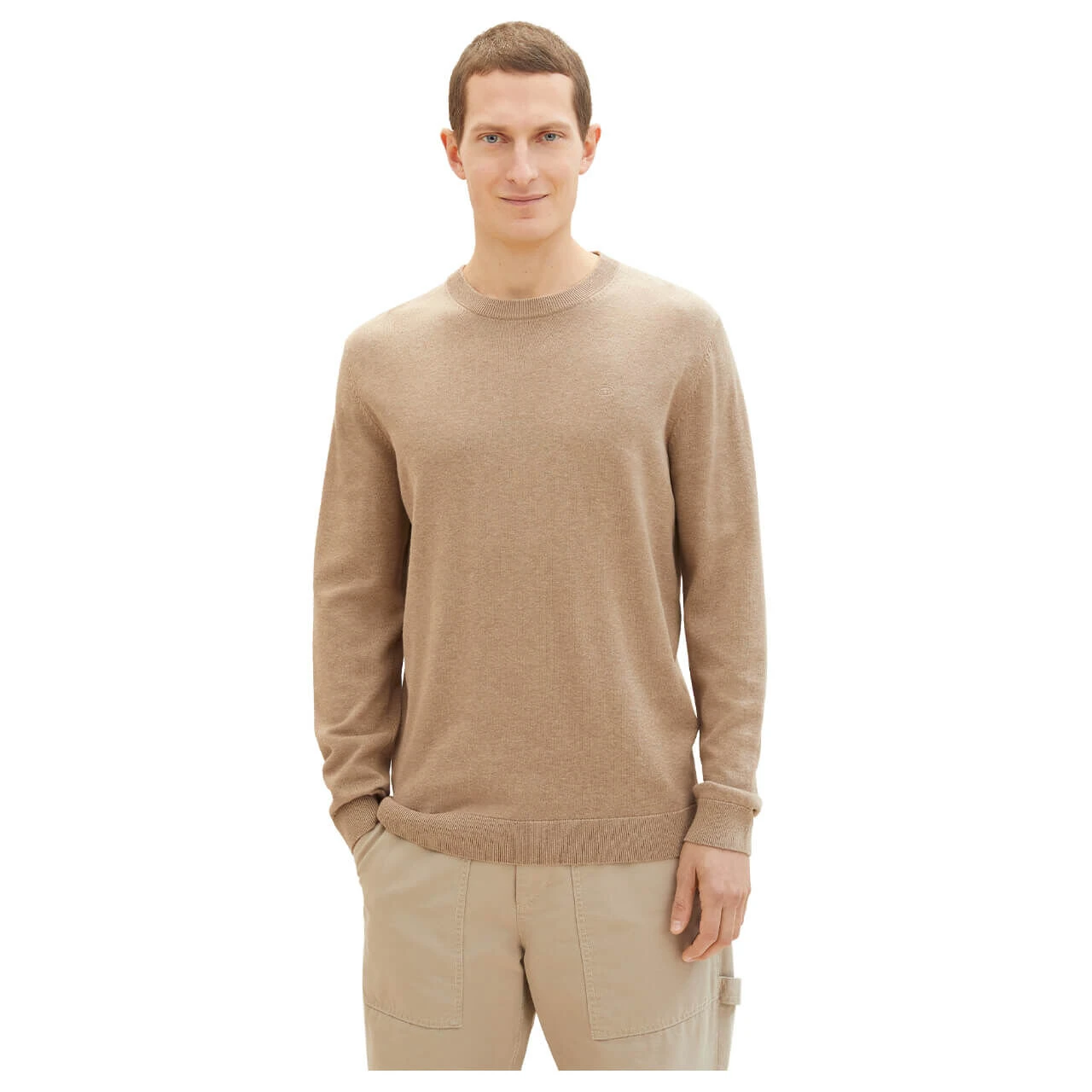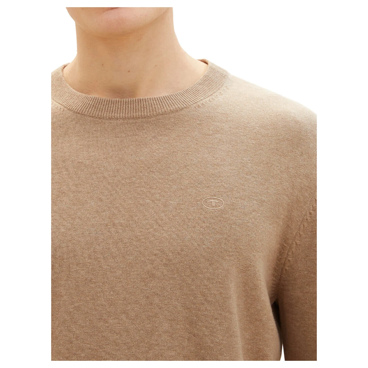 Der Herren Pullover von Tom Tailor besteht aus einem besonderen Material: Compact Cotton sorgt mit seinen langstapeligeren Fasern dafür, dass weniger Abrieb entsteht und eine bessere Formstabilität gegeben ist. Außerdem ist der Basic Crewneck etwas lockerer geschnitten, weswegen Sie besonders leicht ein Poloshirt oder Hemd darunter tragen können.