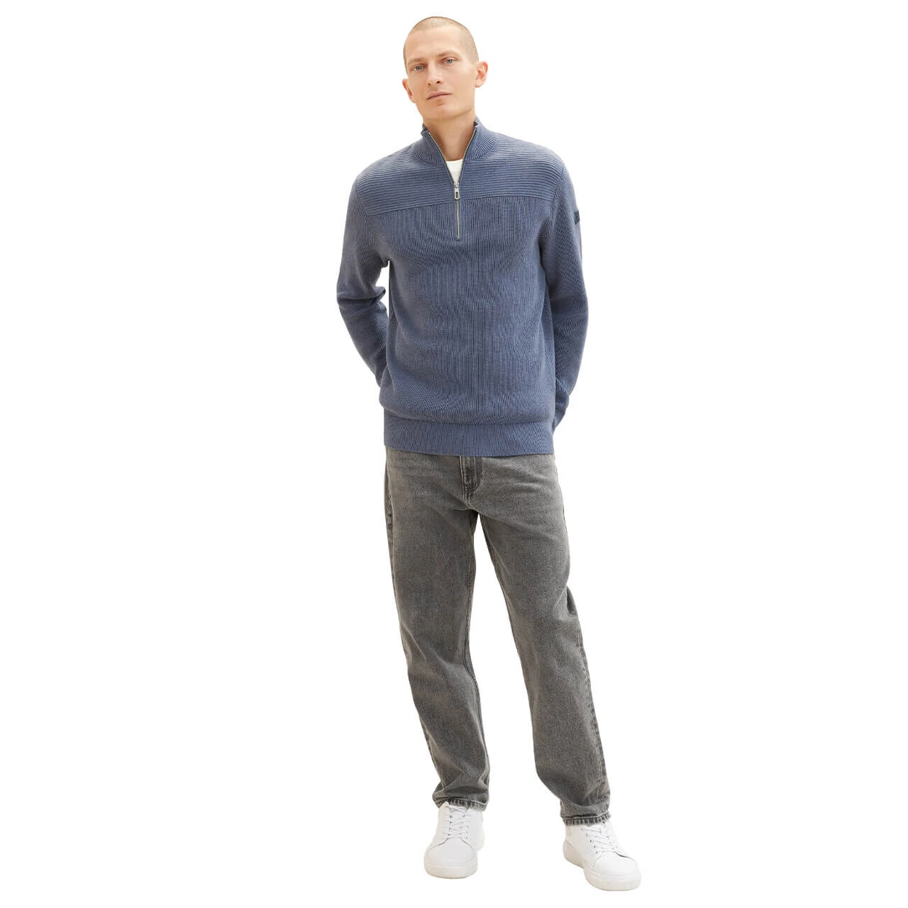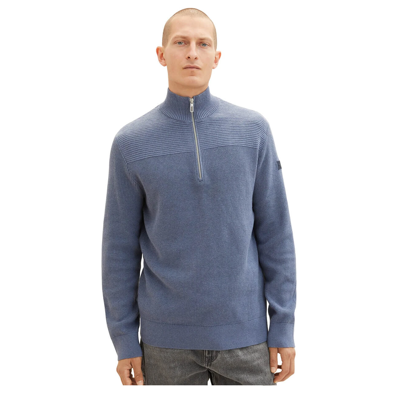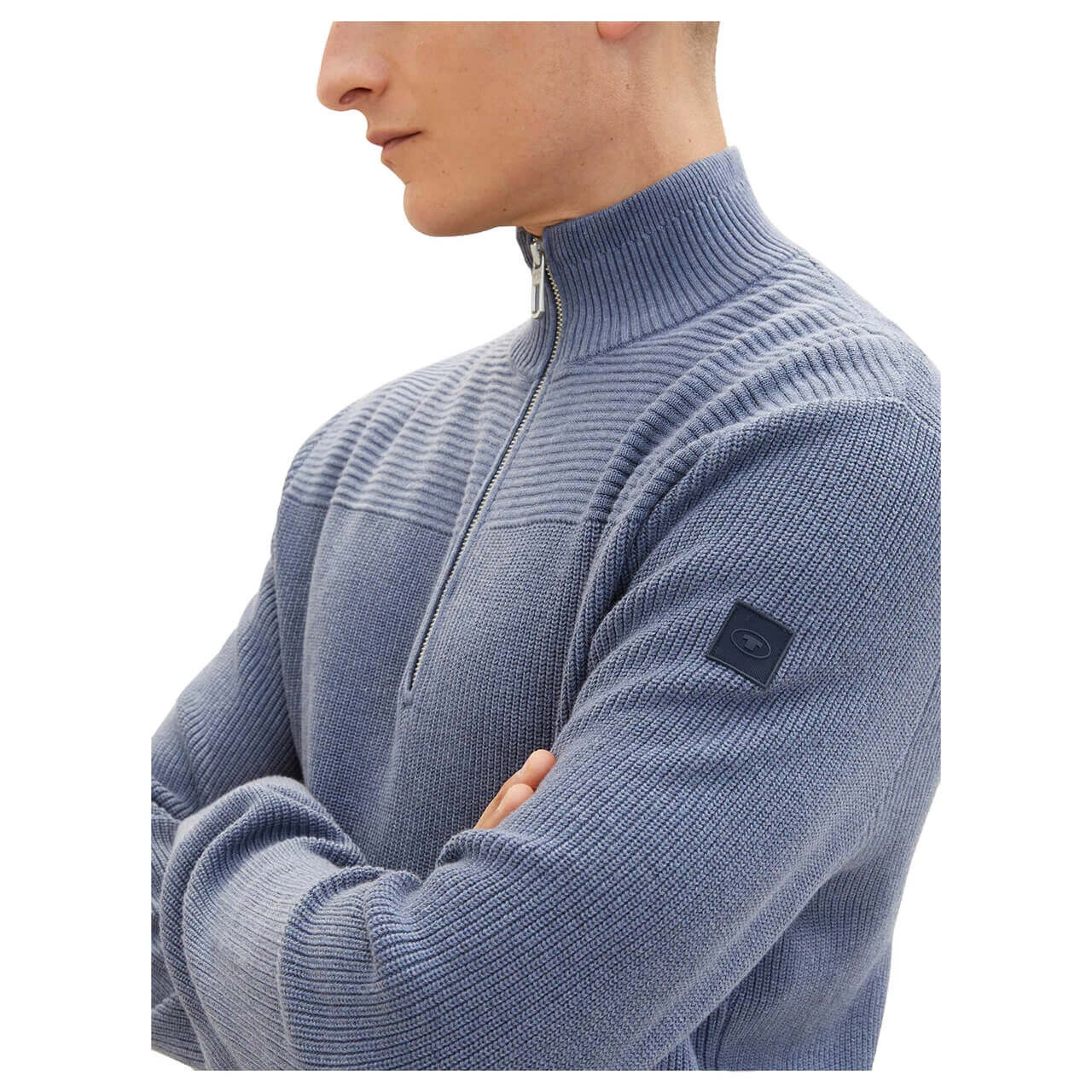 Der Troyer Herrenpullover von Tom Tailor besticht in einem sanften Hellblau. Gerippte Bündchen am Saum und an den Ärmeln garantieren einen guten Sitz.