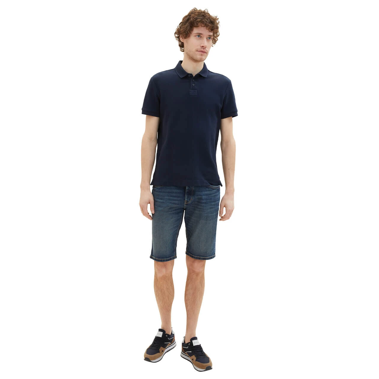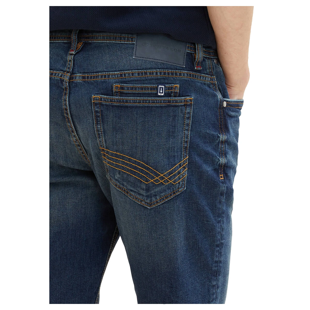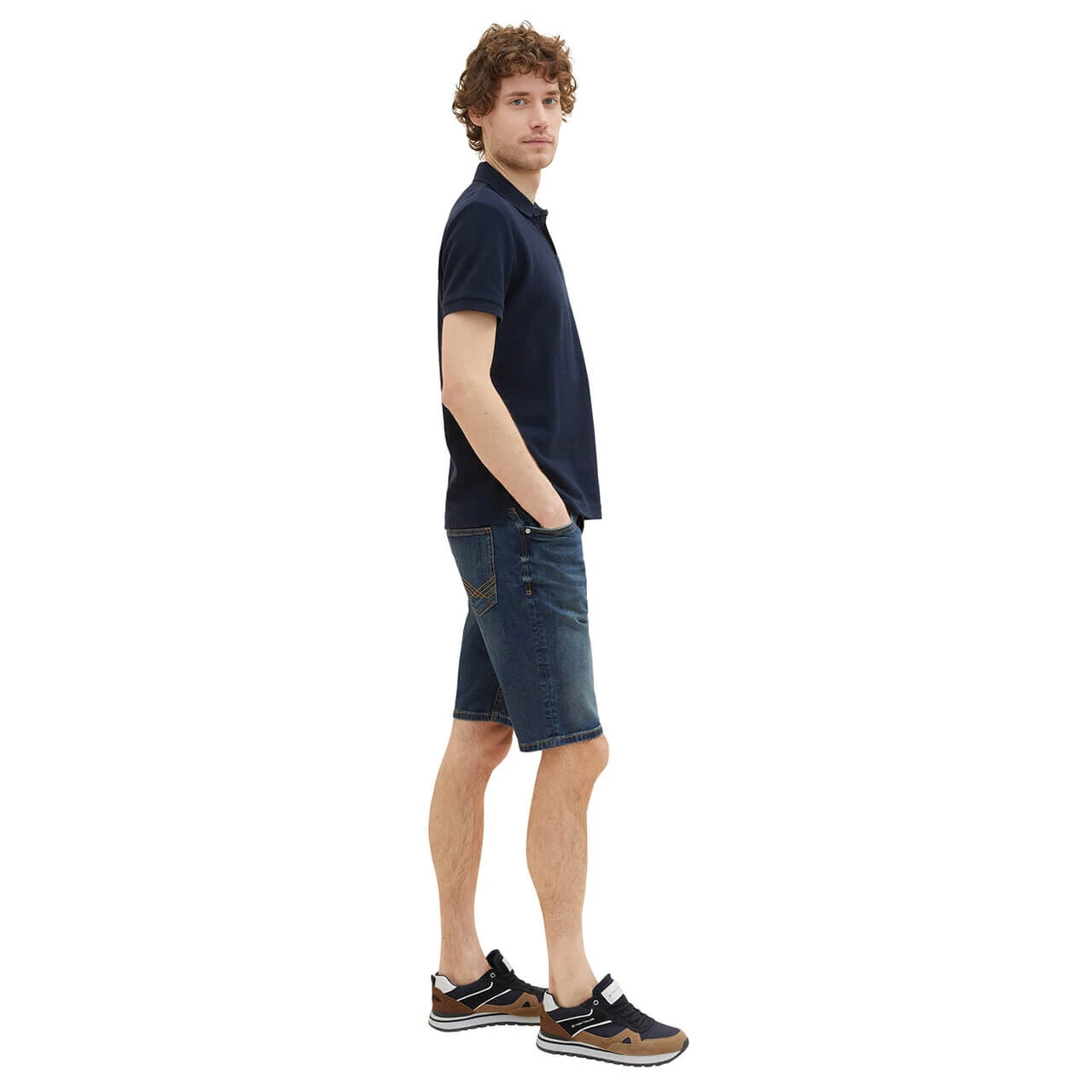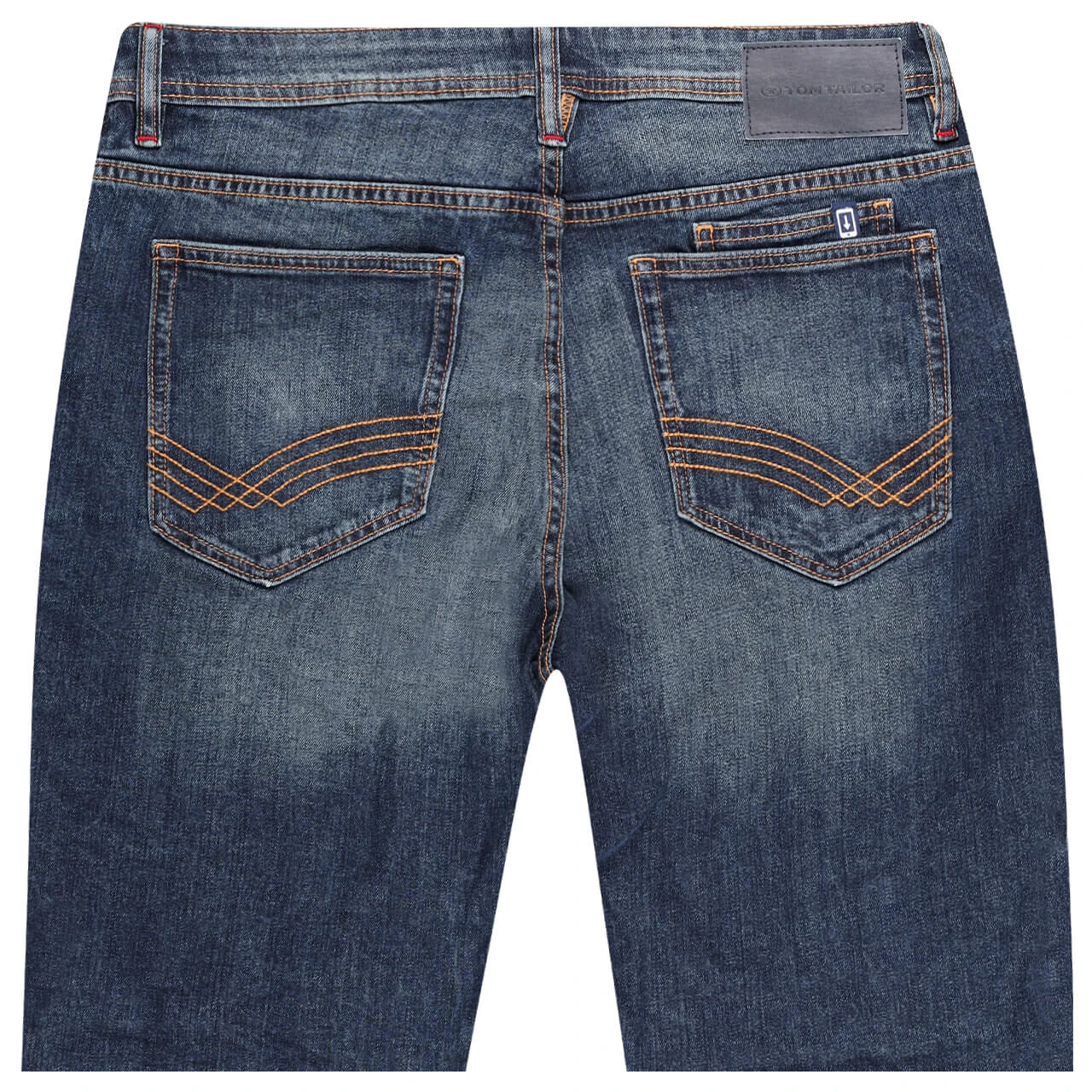 Wenn Sie einen Platz für Ihr Smartphone suchen, finden Sie ihn bei der Tom Tailor Josh in der Gesäßtasche: Dort gibt es extra eine Tasche für das Handy. Nicht nur funktional, sondern auch optisch hat es die Herrenjeans in Bermudalänge drauf: Das dunkle, leicht angewaschene Blau kontrastieren braune und rote Nähte.