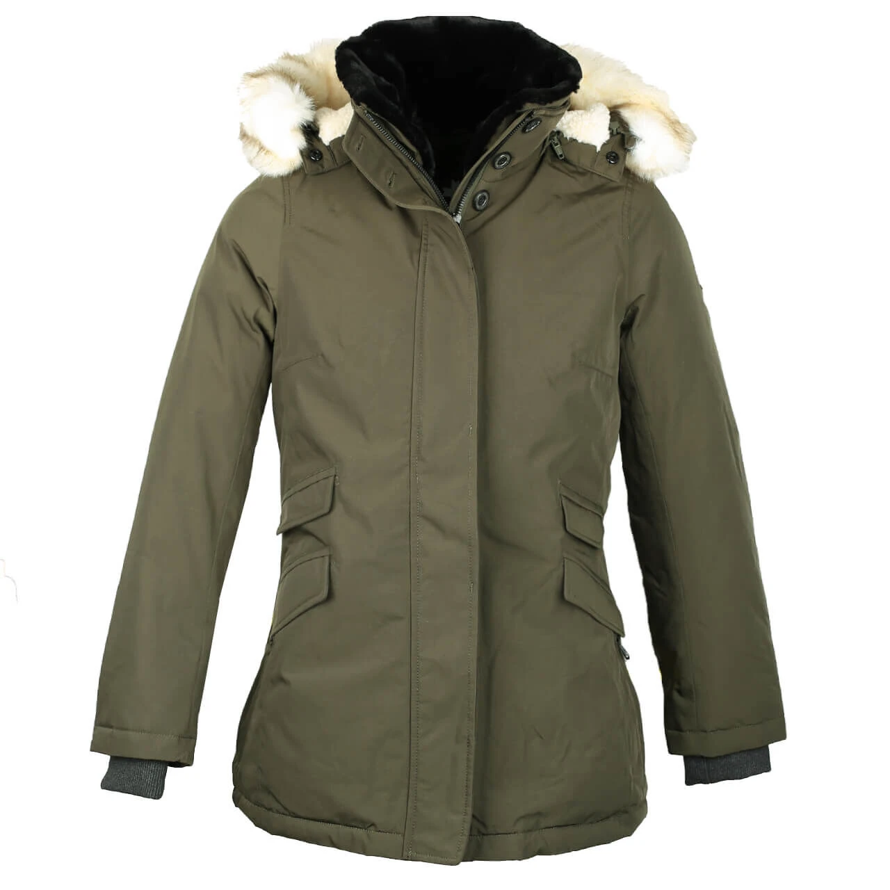 Die dunkelgrüne Wellensteyn Enterprise überzeugt auf ganzer Linie: Insgesamt sieben Taschen bieten Ihnen großzügigen Stauraum für Ihre Utensilien, die zugleich vor Wind und Wetter geschützt werden. Sechs Taschen finden Sie auf der Front, während sich eine weitere auf der Innenseite versteckt. Verschweißte Nähte sowie eine wind- und wasserdichte Eigenschaft machen die Enterprise zu einem optimalen Begleiter an ungemütlichen Tagen. Auf Komfort müssen Sie keineswegs verzichten! Ein Zwei-Wege-Reißverschluss gibt dem Modell Flexibilität, während die Damen Winterjacke auf der Innenseite mit einem kuscheligen Teddyfell und einem Gummizug punktet, um die Weite der Taille zu regulieren. Der Webpelzkragen am Hals, die größenverstellbare Kapuze und der Kunstfellrand sind abnehmbar. Gerippte Bündchen an den Ärmeln verhindern das Eindringen von Nässe und Kälte. Ein Pullover lässt sich problemlos unter der Enterprise tragen.