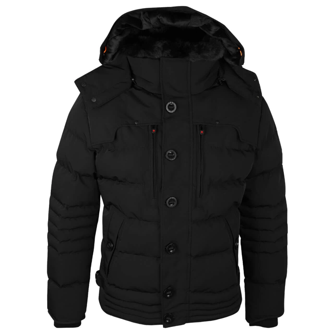 Die Wellensteyn Starstream in der Qualität StroBoAirTec: Das Obermaterial zeichnet sich durch eine matte, leicht strukturierte Optik aus. Das robuste, unempfindliche Modell wertet das elegante Schwarz mit kleinen Details in auffälligen Farben auf. So peppt ein Orange die größenverstellbare, abnehmbare Kapuze auf, ein Rot blitzt an den Reißverschlüssen der Brusttaschen hervor. Die Herren Winterjacke wirkt durch ihre Taillenriegel, den etwas kürzeren Schnitt und das unterschiedlich gehaltene Steppmuster sehr sportlich. Zwei Innentaschen mit Zipper und zwei Hüfttaschen mit Knopf statten die winddichte Funktionsjacke mit Stauraum aus. Ein Zwei-Wege-Reißverschluss, ein abnehmbarer Stehkragen mit künstlichem Webpelz sowie das Teddyfell im Innenbereich der Jacke stehen für einen Komfort auf höchstem Niveau.